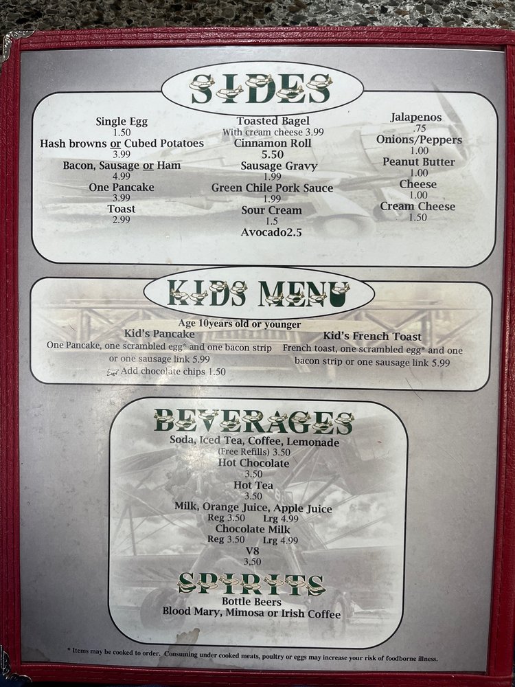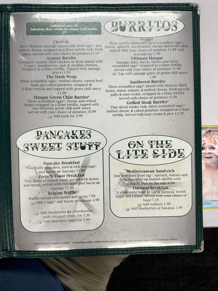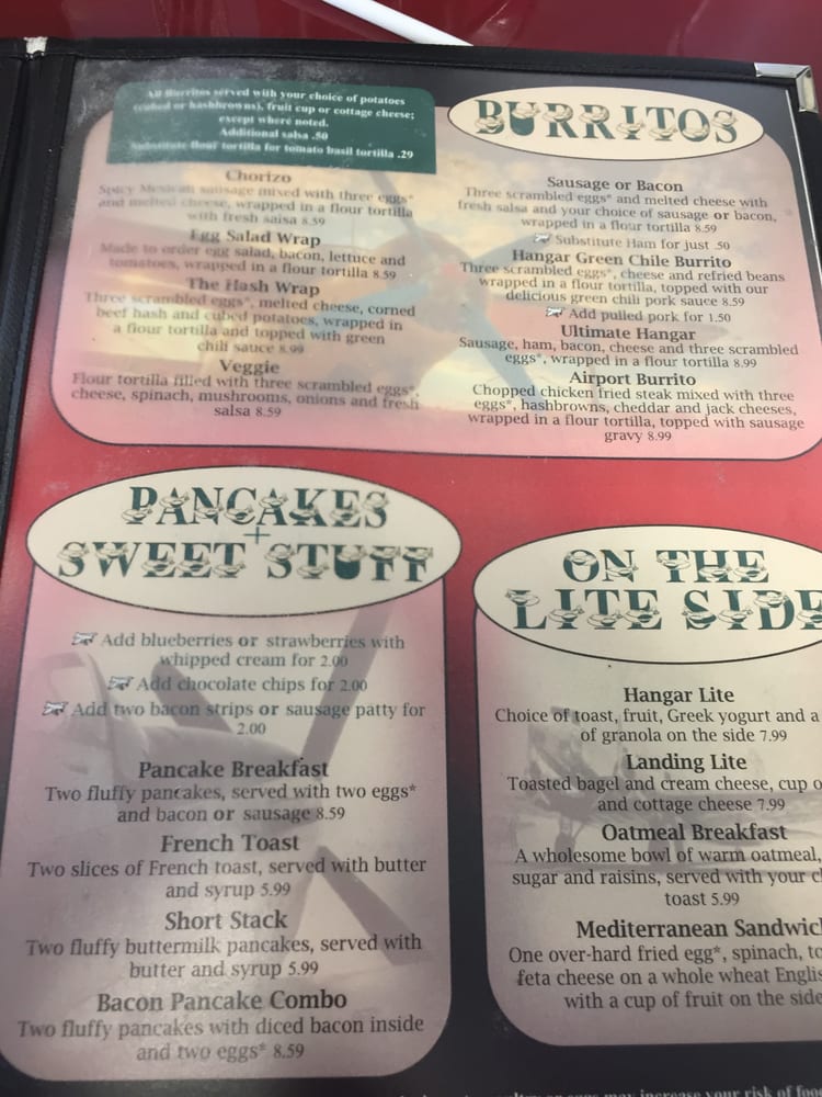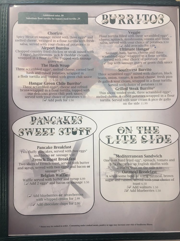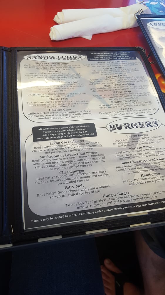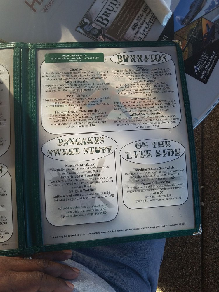Hangar Cafe, located in Chandler, AZ, offers a unique dining experience with its proximity to the airport runway, allowing guests to enjoy watching planes take off and land while indulging in delicious meals. The menu features a variety of options, including mouthwatering appetizers like Spinach & Artichoke Dip and Basket of Shrimp. Their signature dishes include the Egg Salad Wrap, Ultimate Grilled Cheese Sandwich, Pita Burger, and Hamburger, all served with generous portions and flavorful ingredients. The cafe exudes a nostalgic diner feel, perfect for families and plane enthusiasts alike. With friendly service, large portions, and a charming ambiance, Hangar Cafe is a hidden gem for those looking for a memorable dining experience.